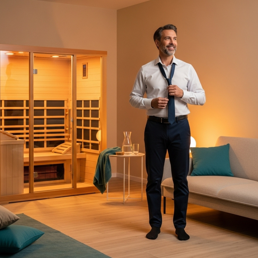 End your day with 20 minutes in the sauna to support muscle recovery, improve sleep quality, and transition into peaceful evening mode.